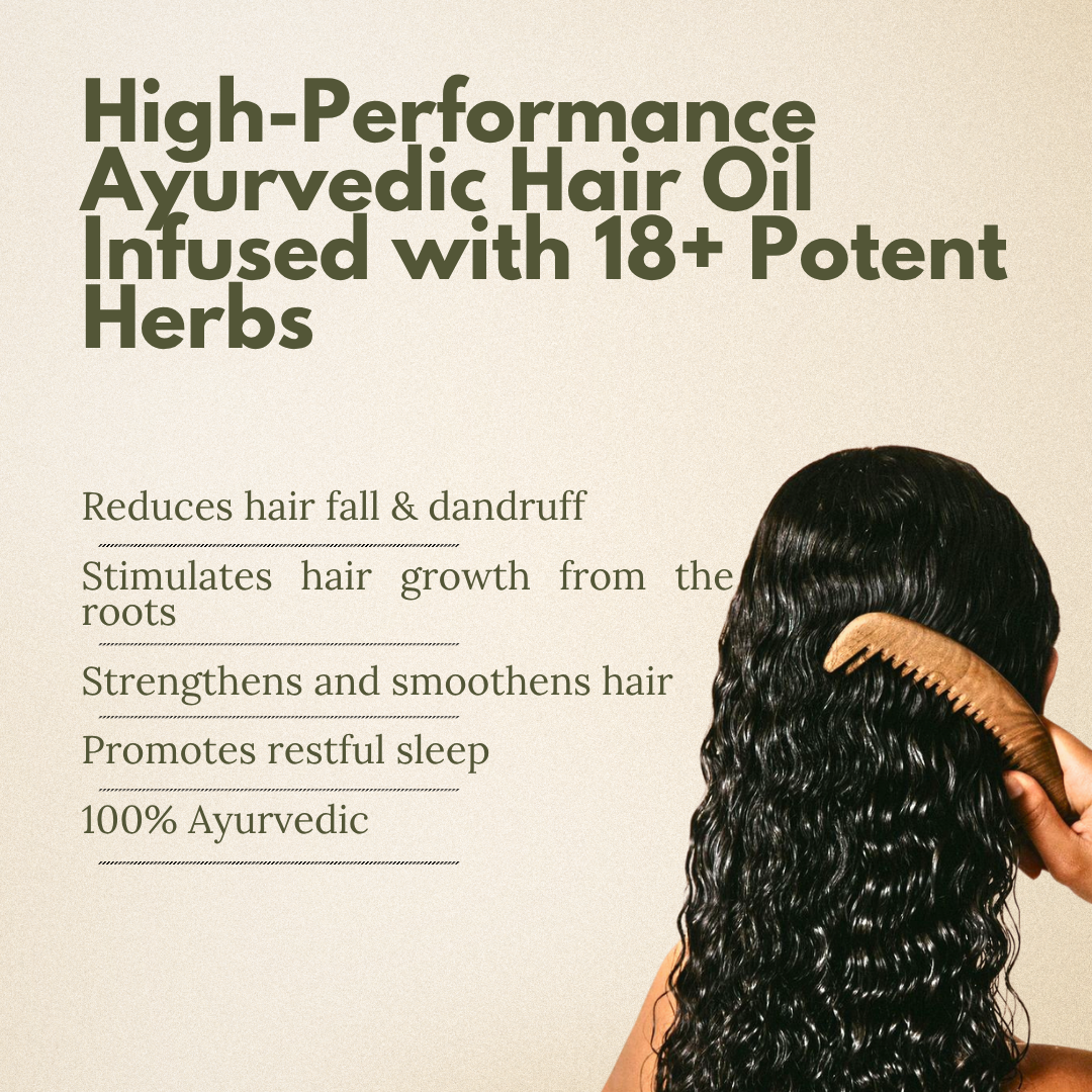 A restorative Ayurvedic blend infused with potent herbs to strengthen roots and reduce hair fall