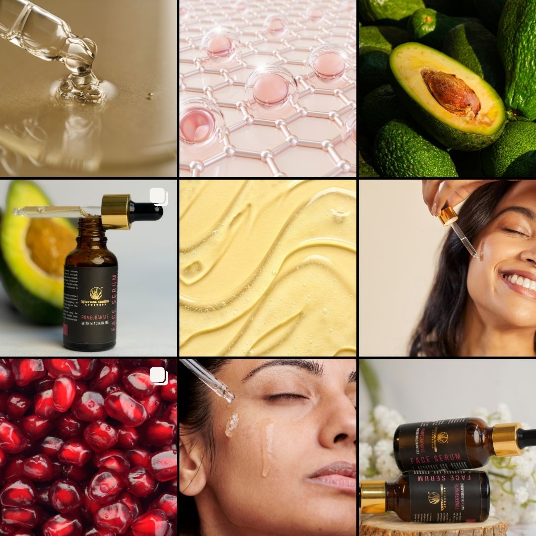 Mystical Genesis Ayurveda’s Face serums offer a range of benefits depending on their formulation. They can help hydrate and moisturize the skin, reduce the appearance of wrinkles and fine lines, even out skin tone, brighten the complexion, minimize pores, and address specific skin concerns such as acne or hyperpigmentation.